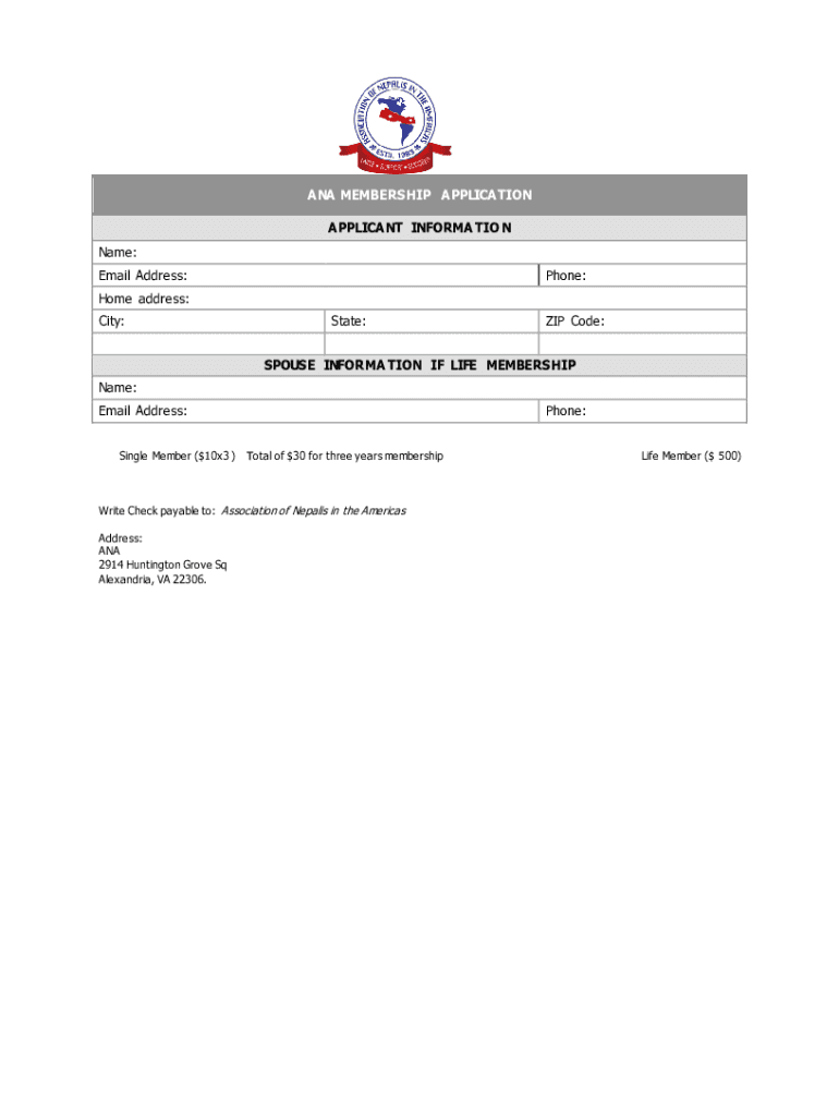 ANA MEMBERSHIP APPLICATION