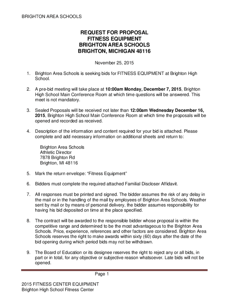 Get the free REQUEST FOR PROPOSAL FITNESS EQUIPMENT BRIGHTON AREA SCHOOLS ...