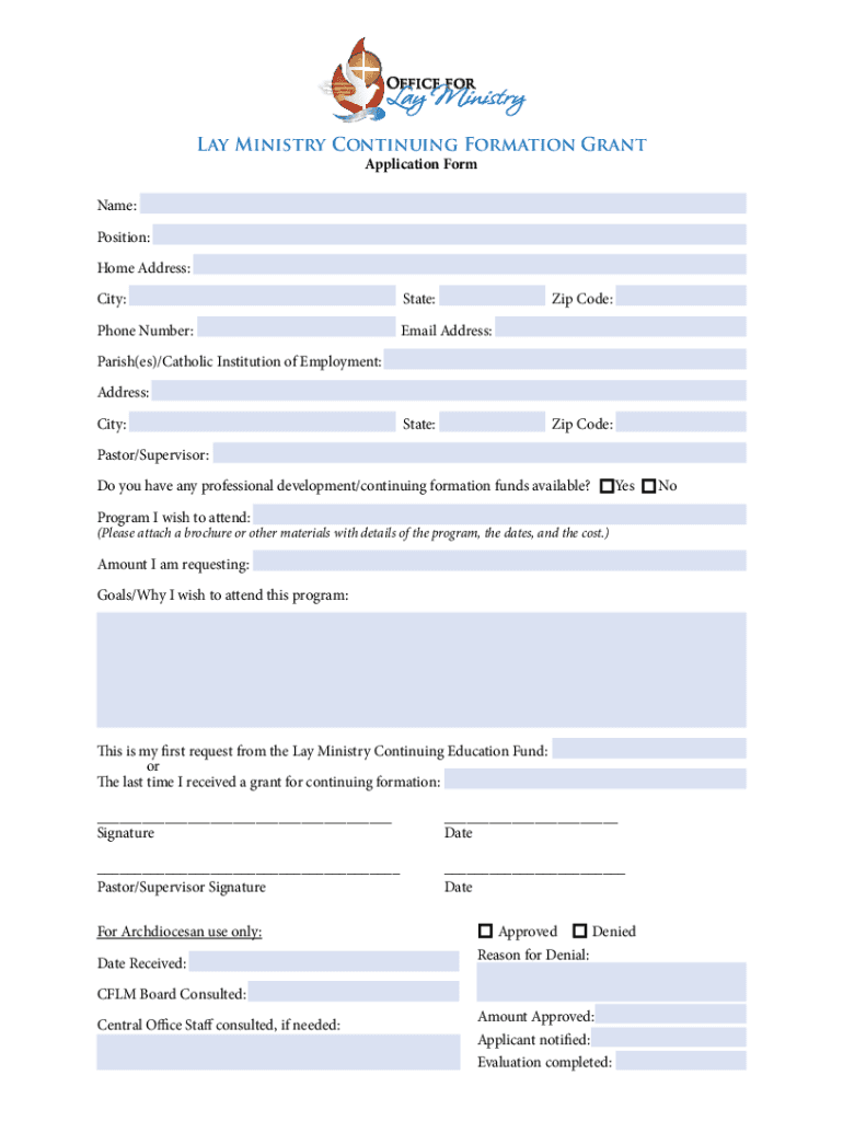 Get the free Lay Ministry Continuing Formation Grant Application Form