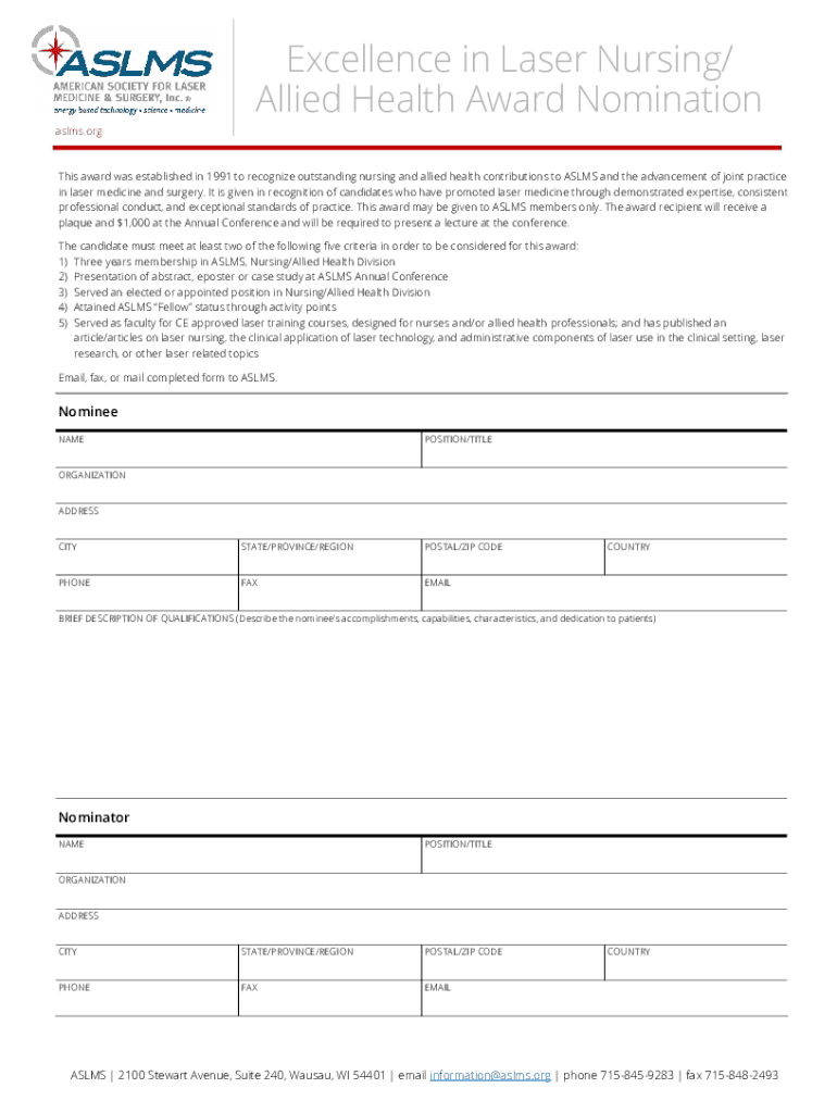 Fill out your national nursing awards online with pdfFiller!
