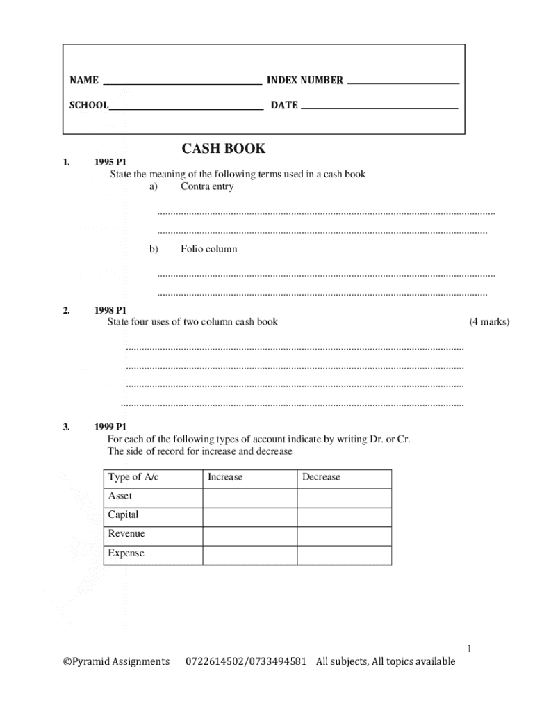 1.1995 P1State the meaning of the following terms used in a cash book