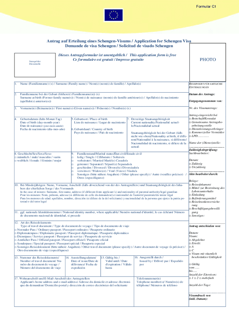 Formula C1Antrag AUF Derailing lines SchengenVisums / Application for Schengen Visa