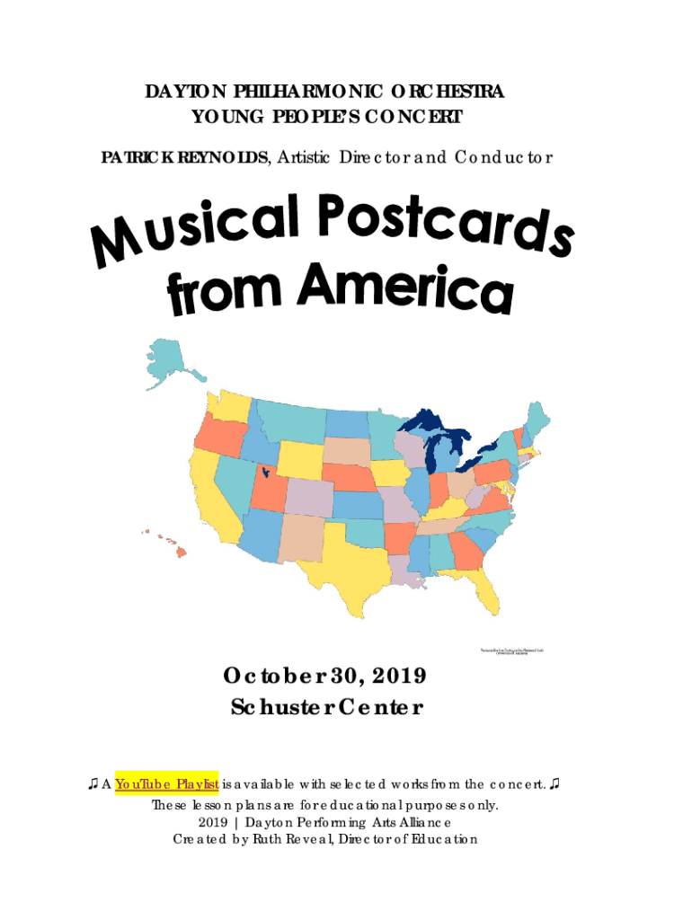 DAYTON PHILHARMONIC ORCHESTRA YOUNG PEOPLES CONCERT PATRICK REYNOLDS, Artistic Director and Conductor October 30, 2019, Schuster Center A YouTube Playlist is available with selected works from the