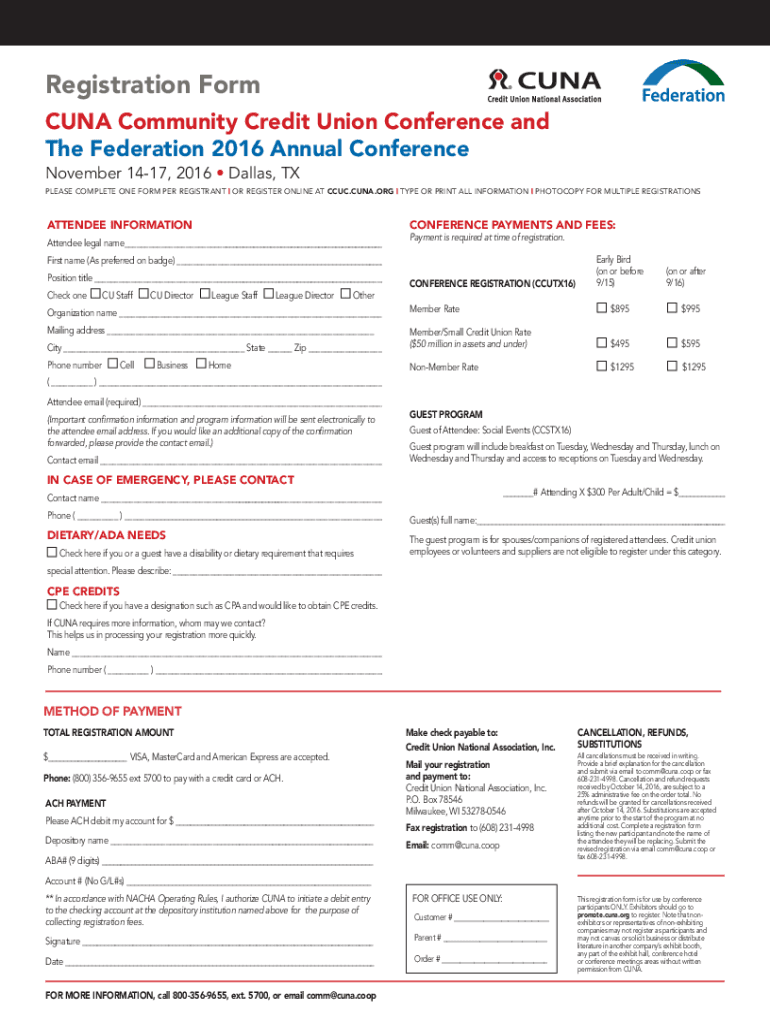 Get the free registration form - Credit Union National AssociationCUNA