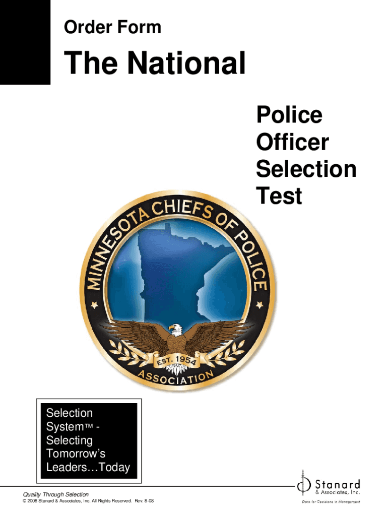 Order Forth National Police Officer Selection Test Selection System Selecting Tomorrows LeadersToday Quality Through Selection 2008 Standard & Associates, Inc. All Rights Reserved. Rev. 808How to