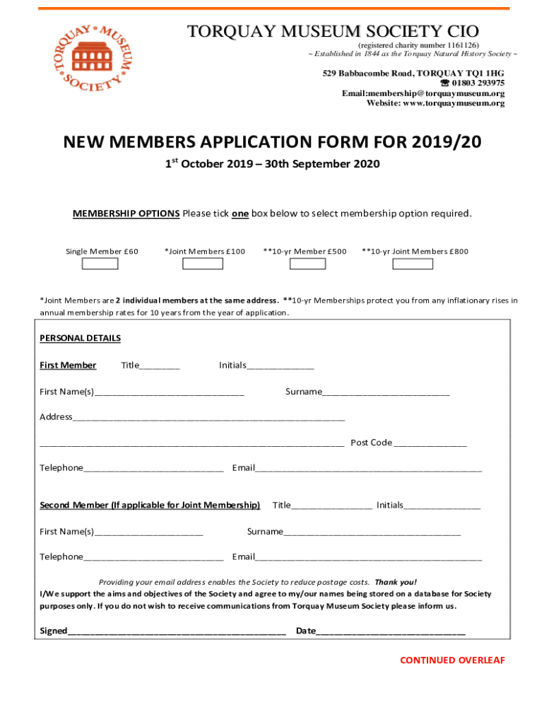 Get the free NEW MEMBERS APPLICATION FORM FOR 2019/20