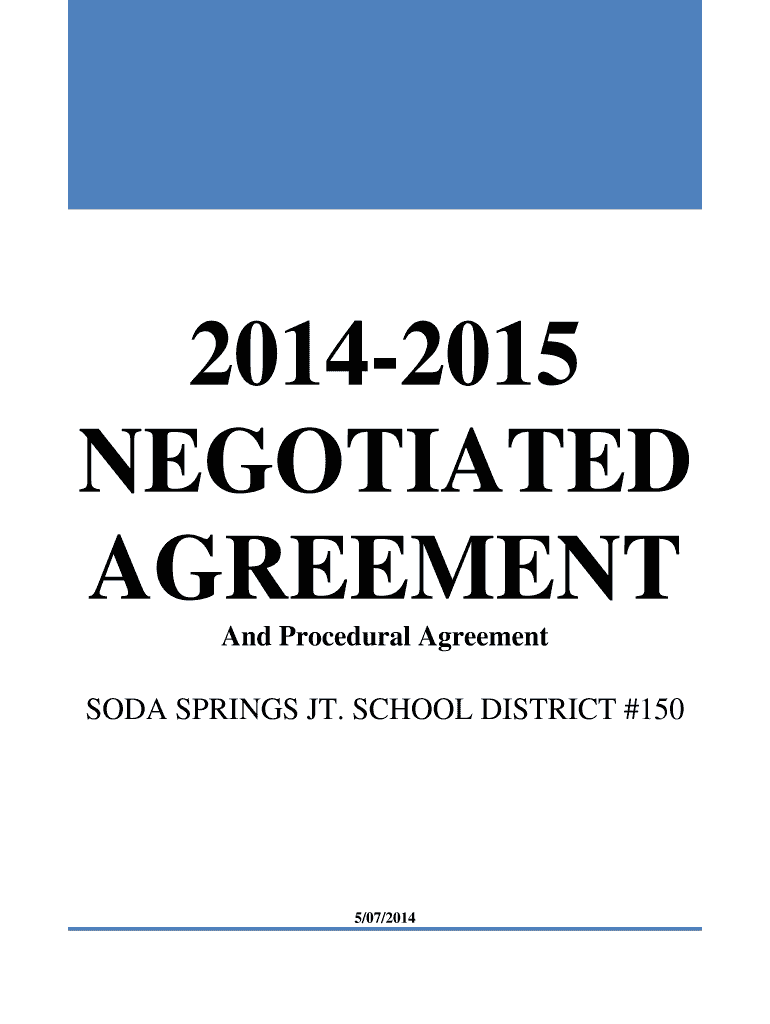 20142015 NEGOTIATED AGREEMENT And Procedural Agreement SODA SPRINGS JT. SCHOOL DISTRICT #150 5/07/2014 SODA SPRINGS EDUCATION ASSOCIATION NEGOTIATED AGREEMENT AND PROCEDURAL AGREEMENT 20132014 TABLE