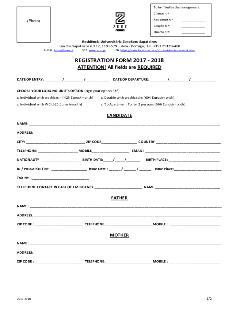 To be filled by the management:(Photo)Client n. Residents n. Cato n.: Quarto n.: Residence University Zones Spatial RUA dos Spatial n. 12, 1100579 Lisbon Portugal, Tel. +351 213216400 EMAIL: Lisbon