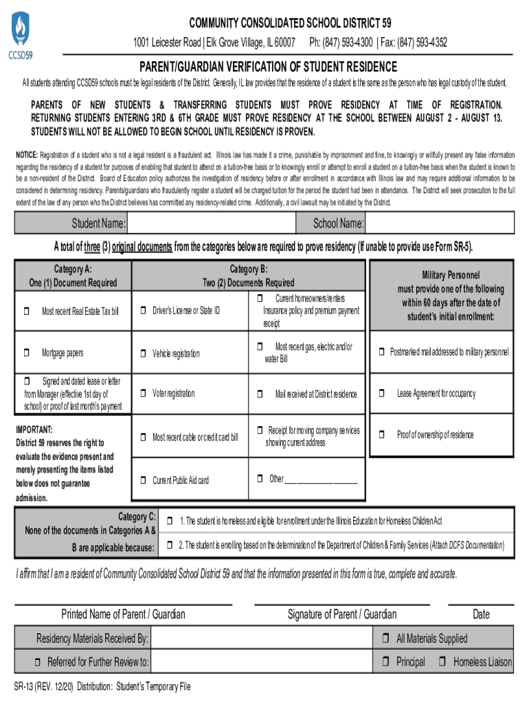 Get the free All students attending CCSD59 schools must be legal residents of the District