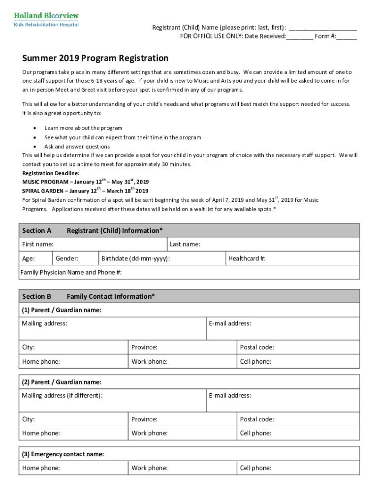 Registrant (Child) Name (please print: last, first): FOR OFFICE USE ONLY: Date Received: Form #: Summer 2019 Program Registration Our programs take place in many settings that are sometimes open and