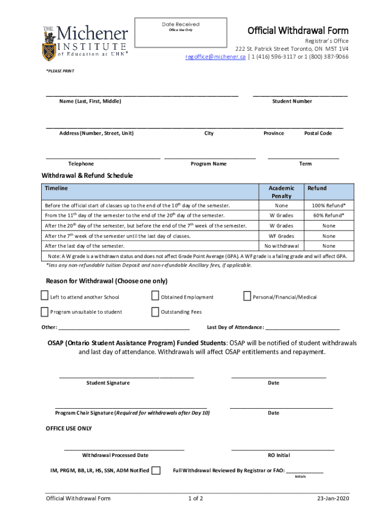 Date ReceivedOfficial Withdrawal FormOffice Use OnlyRegistrars Office 222 St. Patrick Street Toronto, ON M5T 1V4 reg office Kitchener.ca 1 (416) 5963117 or 1 (800) 3879066 *PLEASE PRINT Name (Last,