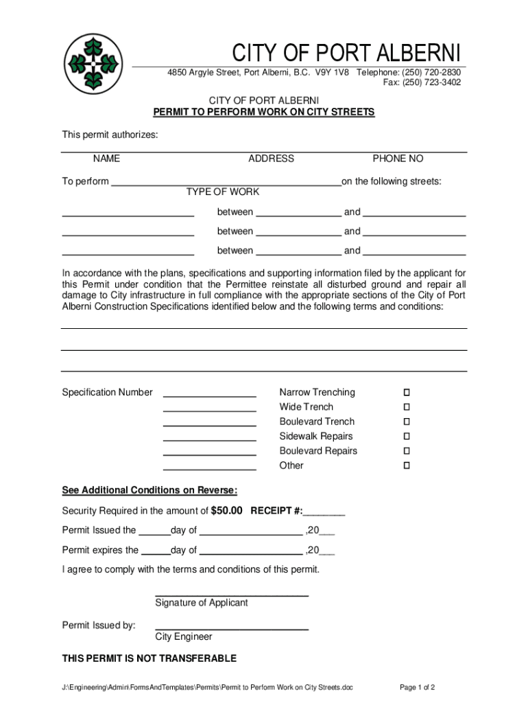 PERMIT Performing WORK ON CITY STREETS