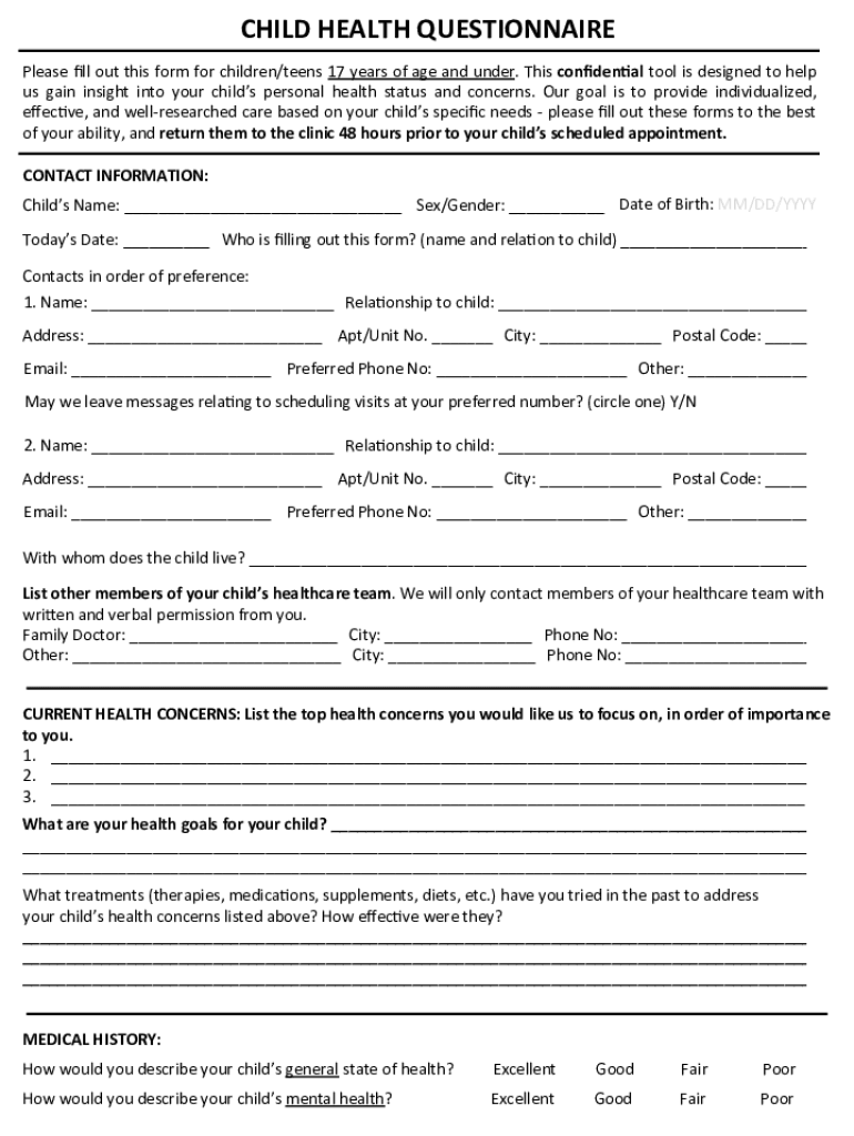 us gain insight into your children personal health status and concerns. Our goal