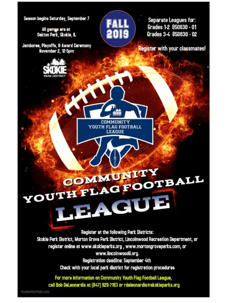 2019 Community Youth Flag Football League Attention Flag Football families: The Community Youth Flag Football League includes the communities of Evanston, Lincoln wood, Morton Grove, Nile's, and Skokie