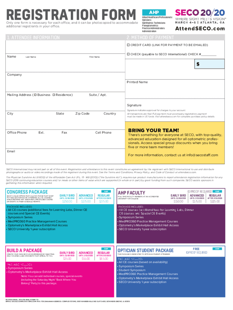 REGISTRATION Commonly one form is necessary for each office, and it can be photocopied to accommodate additional registrants in your office.1. ATTENDEE INFORMATIONAL Allied Healthcare Professionals: