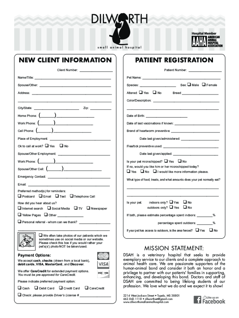 Get the free NEW CLIENT & PATIENT INFORMATION SHEET