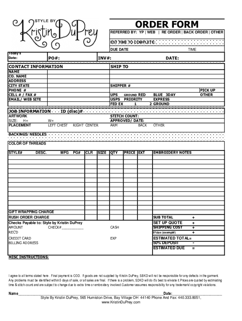 Get the free ORDER FORM - Style by Kristin DuPrey