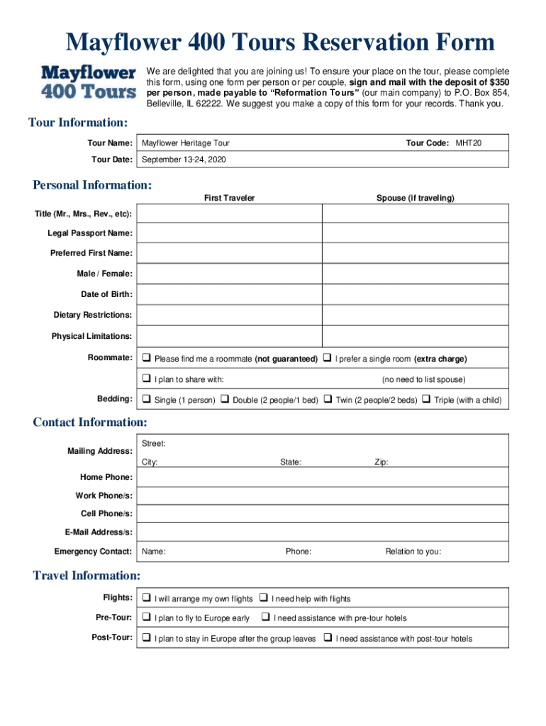 Get the free Mayflower 400 ToursA division of Reformation Tours, LLC
