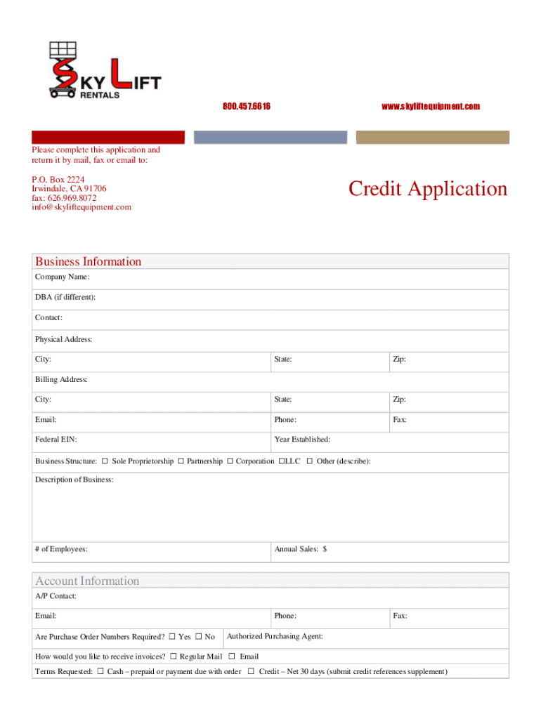 Get the free P.O. Box 2224 Credit Application - skyliftequipment.com