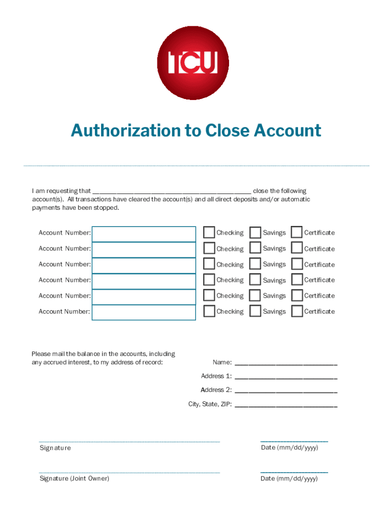 Authorization to Close Account am I requesting that close the following account(s). All transactions have cleared the account(s) and all direct deposits and/or automatic payments have been stopped.