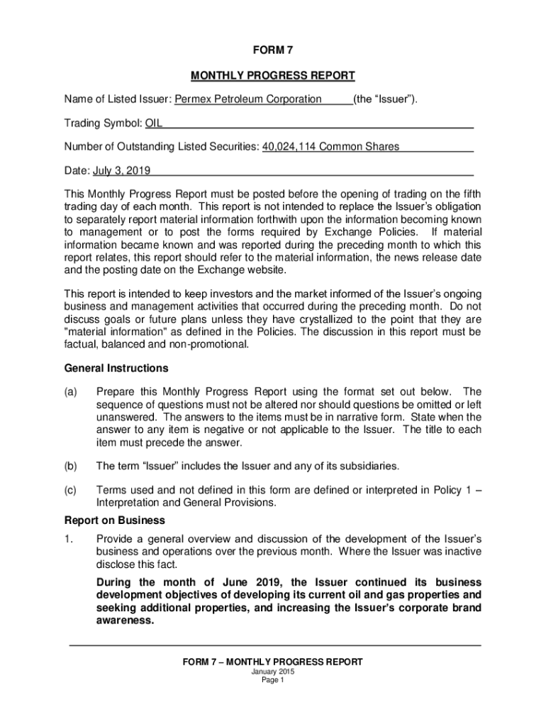 Name of Listed Issuer: Permed Petroleum Corporation(the Issuer). Trading Symbol: OIL