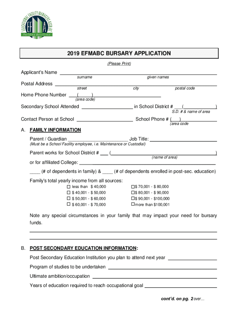 Get the free Bursary Info and Application - School District No. 73