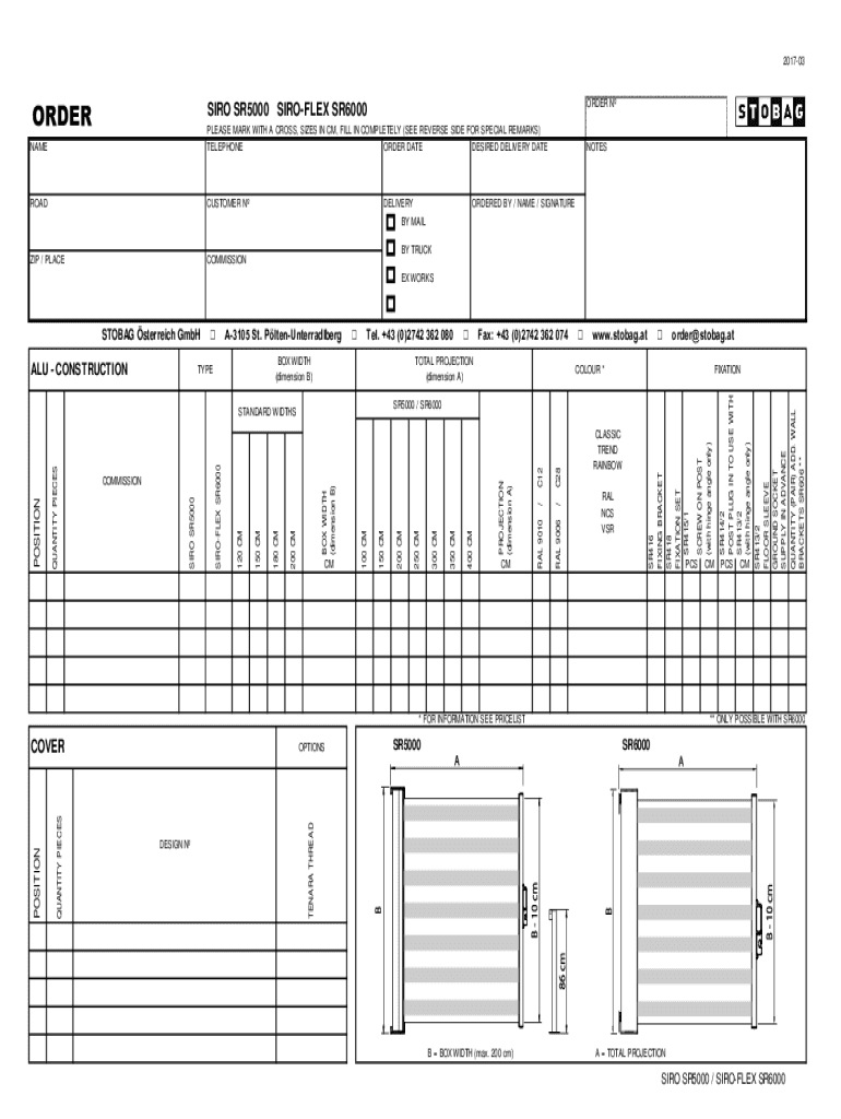 201703ORDER#ORDER SIR SR5000 REFLEX SR6000NAMEPLEASE MARK WITH A CROSS, SIZES IN CM, FILL IN COMPLETELY (SEE REVERSE SIDE FOR SPECIAL REMARKS)