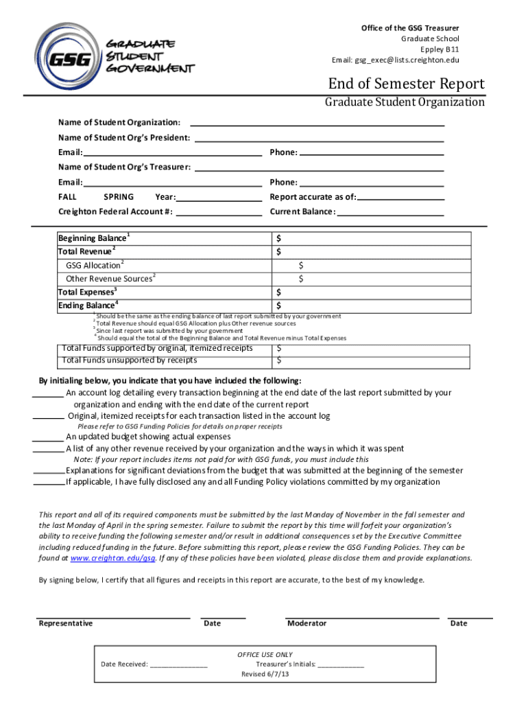 Email:SG_checklists. Creighton.eduEndofSemesterReport