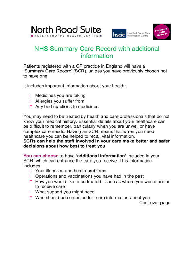 Nhs Summary Care Record is not the form you're looking for?Search for another form here.