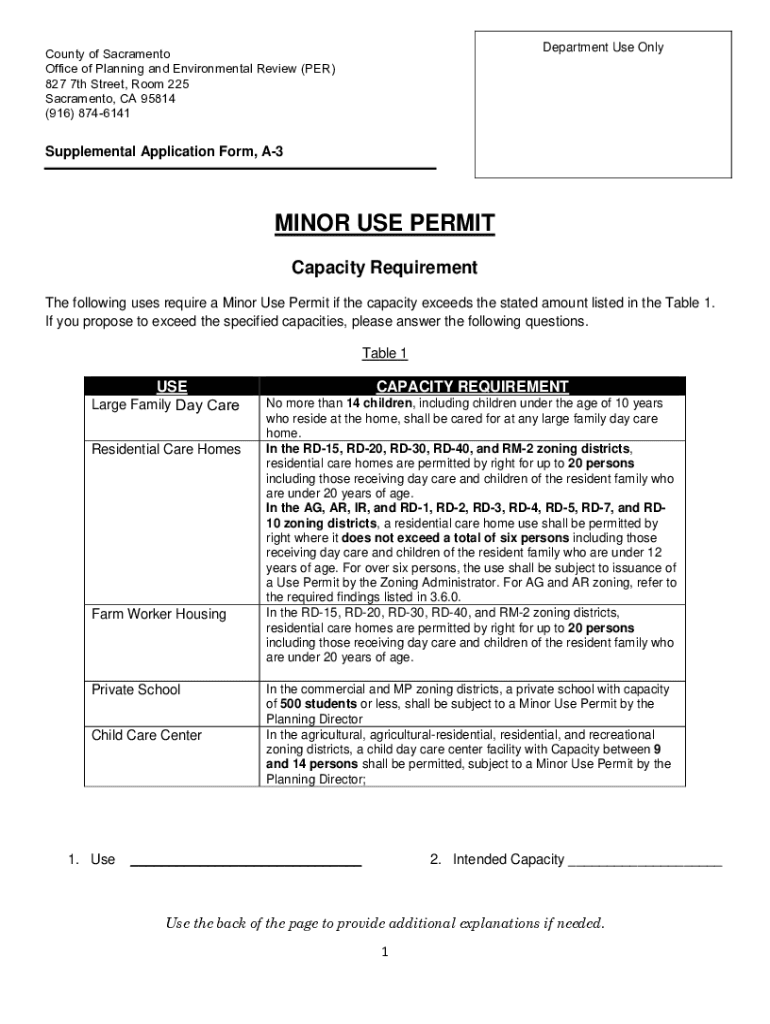 (916) 8746141Supplemental Application Form, A3MINOR USE PERMIT