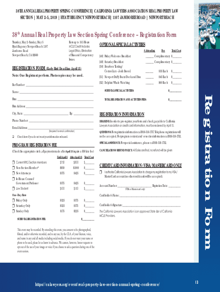 38TH ANNUAL REAL PROPERTY SPRING CONFERENCE CALIFORNIA LAWYERS ASSOCIATION REAL PROPERTY LAW SECTION MAY 25, 2019, HYATT REGENCY NEWPORT BEACH 1107 JAMBOREE ROAD NEWPORT BEACH38th Annual Real Property