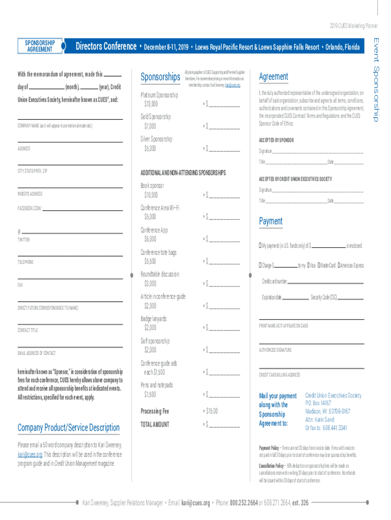 2019 CUES Marketing PlannerDirectors Conference With the memorandum of agreement, made this