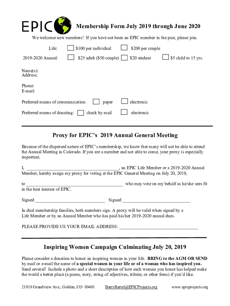 We welcome new members! If you have not been an EPIC member in the past, please join.