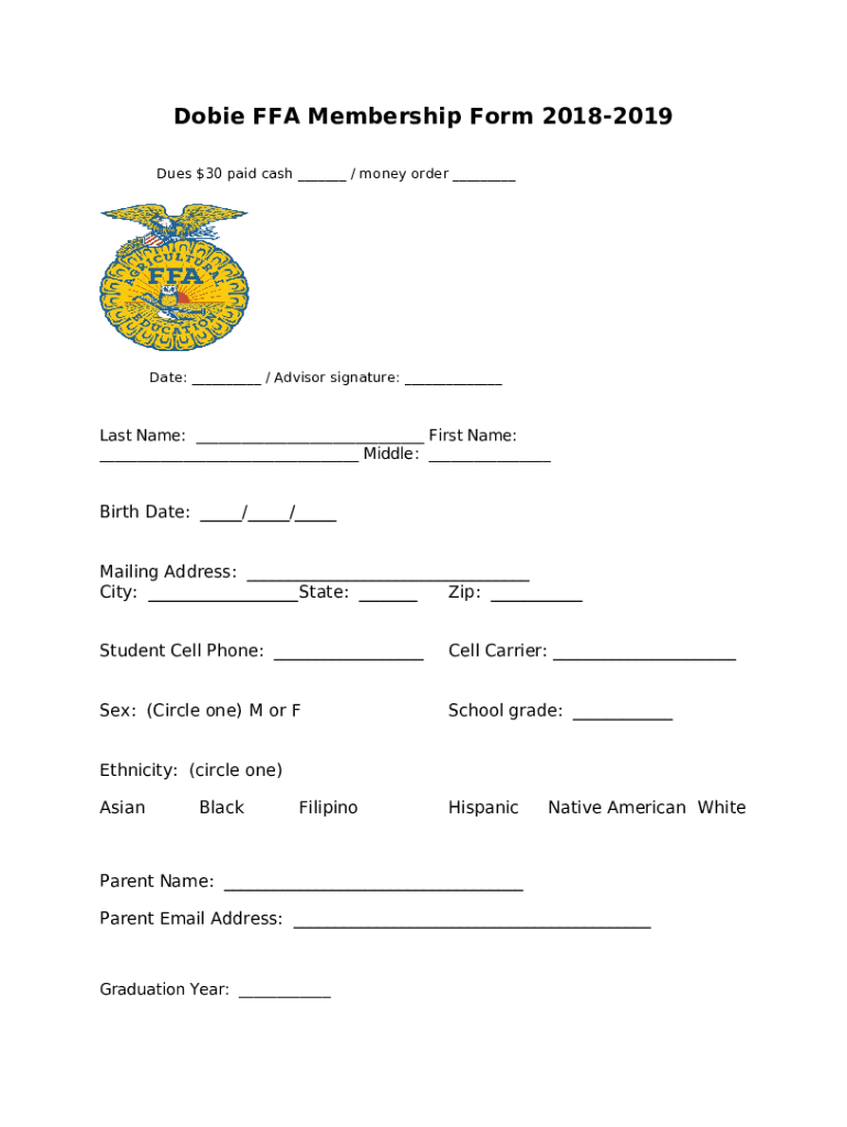 Dobie FFA Membership 2018-2019 word template: frequently asked questions