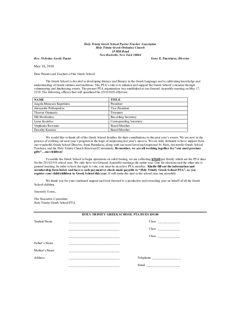 Rev. Nicholas Until, Pastoral Trinity Greek School Parent Teacher Association