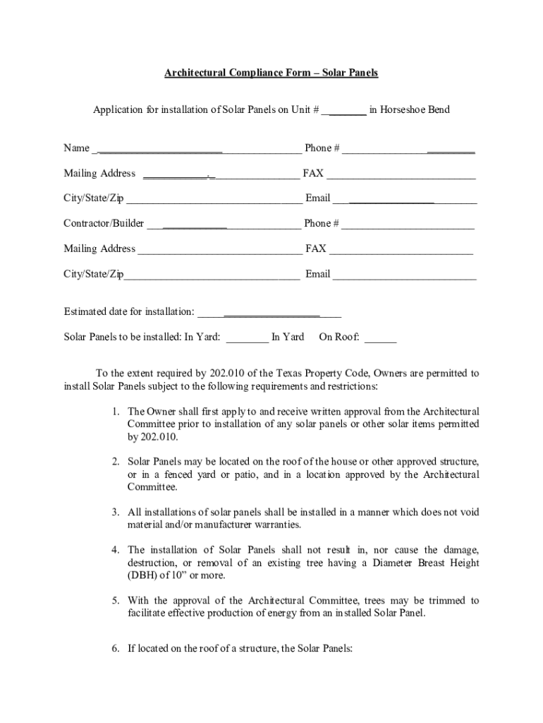 Get the free Architectural Compliance FormSolar Panels