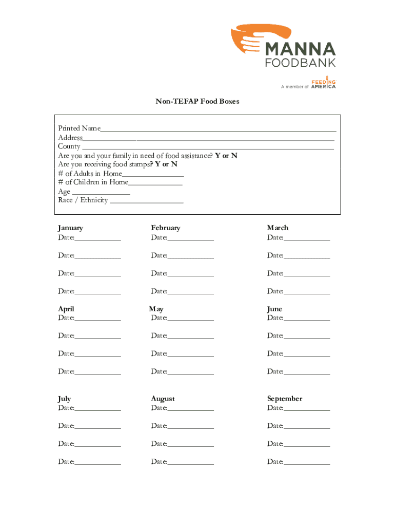 Get the free Non-TEFAP Food Boxes Y or N ? Y or N January February ...