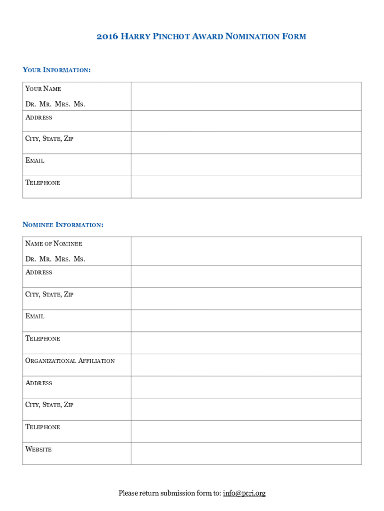 2016 HARRY PINCH OT AWARD NOMINATION FORM!