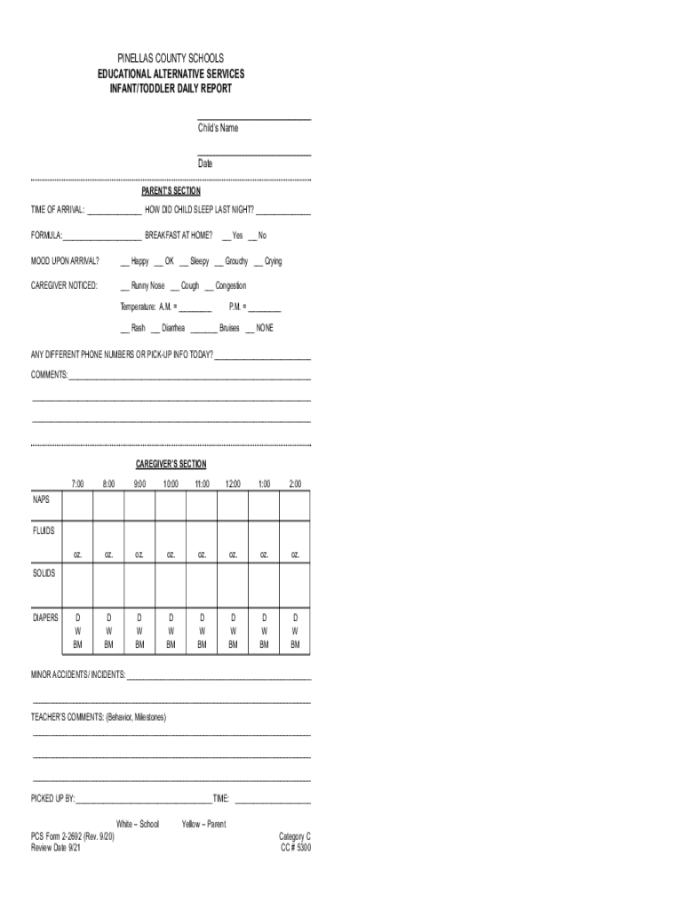 PINELLAS COUNTY SCHOOLS EDUCATIONAL ALTERNATIVE SERVICES INFANT/TODDLER DAILY REPORTPINELLAS COUNTY SCHOOLS EDUCATIONAL ALTERNATIVE SERVICES INFANT/TODDLER DAILY REPORT Child's Name Date Deterrents