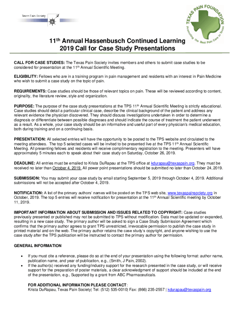 CALL FOR CASE STUDIES: The Texas Pain Society invites members and others to submit case studies to be