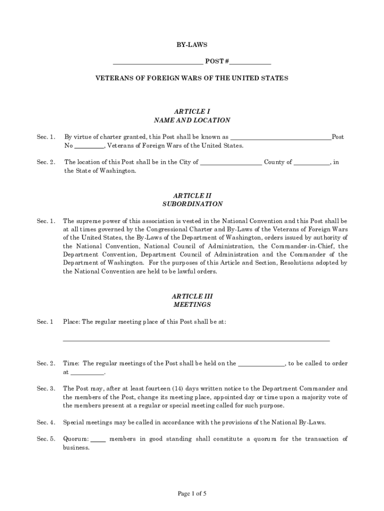 Get the free BY-LAWS STANLEY E. BANKS, SR. POST NO. 10003 VETERANS OF ...