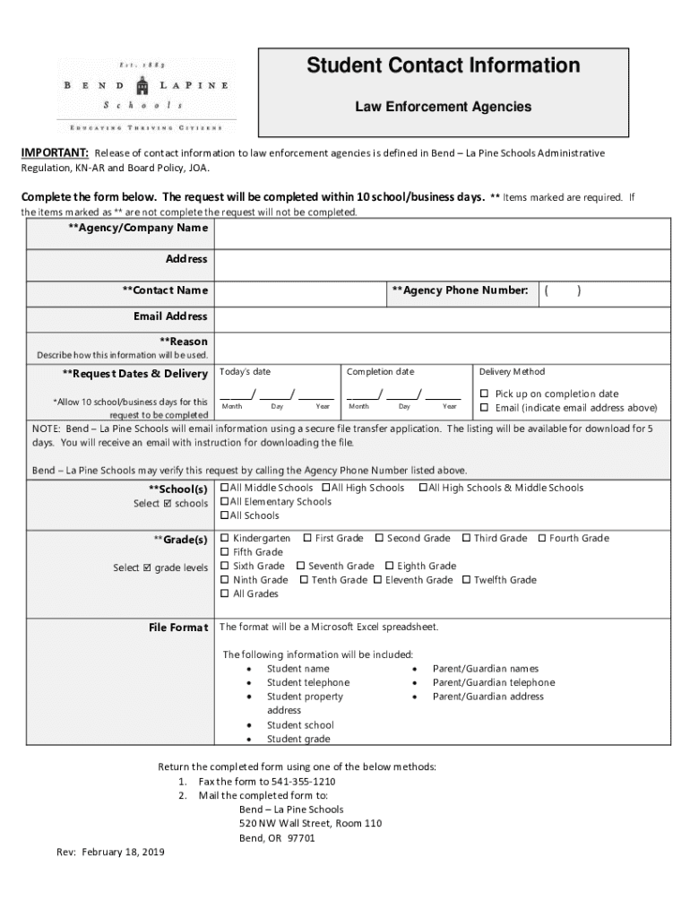 Get the free Bend-La Pine Schools :: Student Contact Information Request ...
