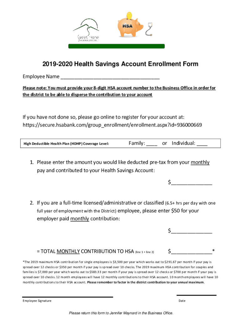 20192020 Health Savings Account Enrollment Form Employee Name Please note: You must provide your 8digit HSA account number to the Business Office in order for the district to be able to disperse the