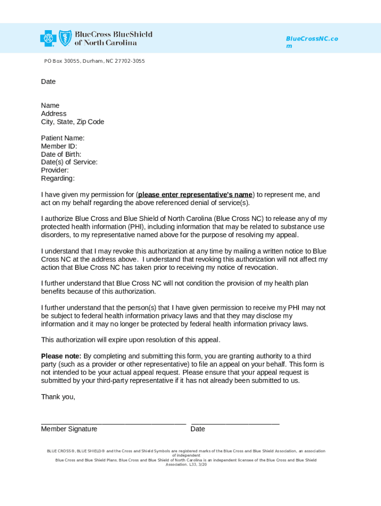 Template North Carolina Health Insurance Plans Blue Cross NC instructions