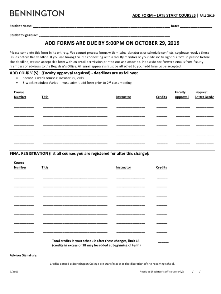 Get the free F19 Add Form-late start courses.docx