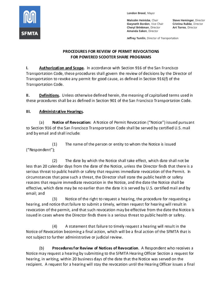 Authorization and Scope. In accordance with Section 916 of the San Francisco