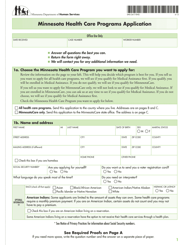 Get the free Minnesota Health Care Programs Application