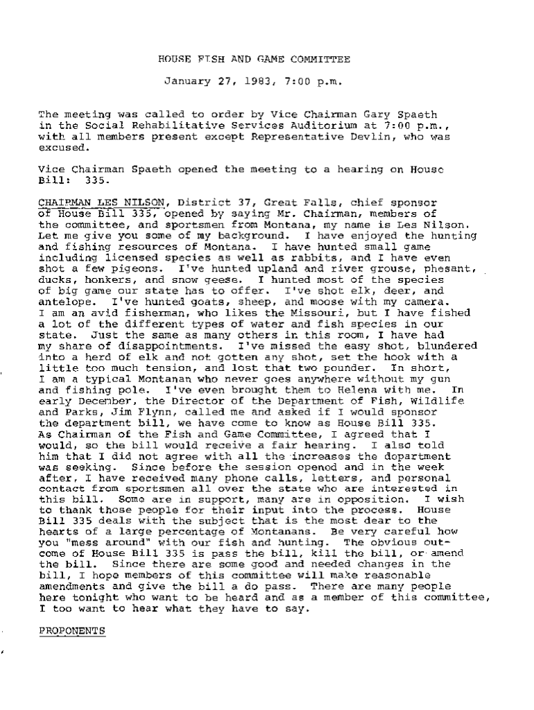 Get the free HOUSE FISH AND GAME COMMITTEE - MT Judicial Branch - courts mt