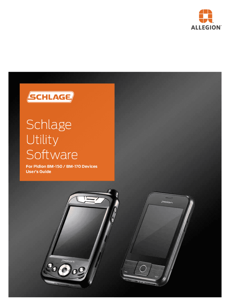 Silage Utility Software For Pinion BM150 / BM170 Devices Users GuideImportant Information Customer Service U.S.A.: 8776717011 www.schlage.com/supportCopyright 2020 AllegionRevision This document has