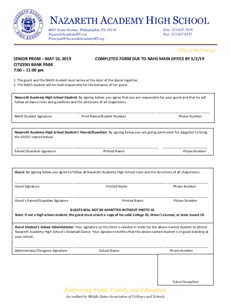 NAZARETH ACADEMY HIGH SCHOOL 4001 Grant Avenue, Philadelphia, PA 19114 NazarethAcademyHS.org Principal NazarethAcademyHS. Oracle: 215.637.7676 Fax: 215.637.8523Office of the Principal SENIOR PROM